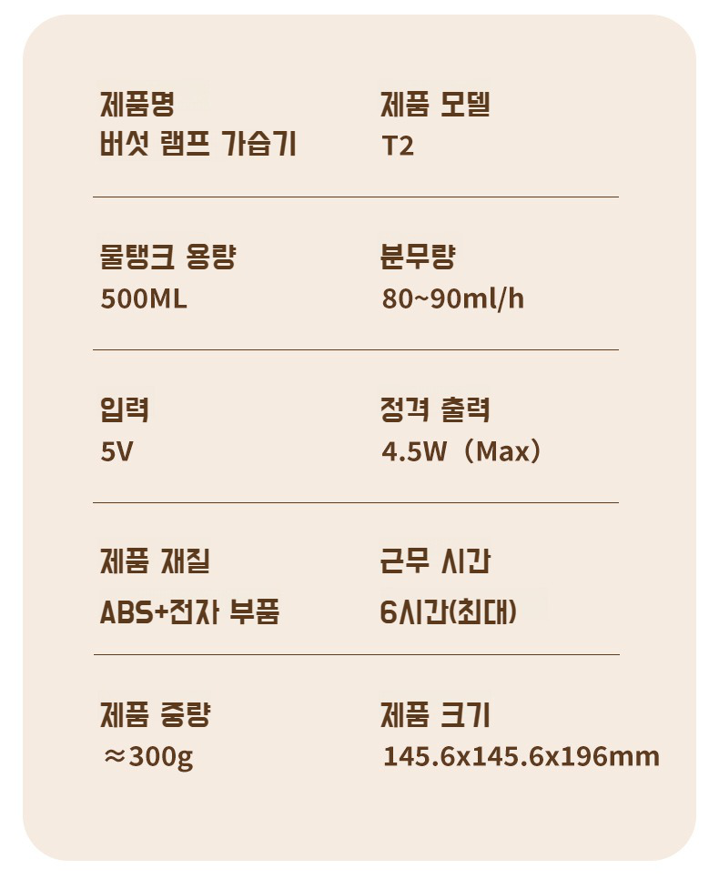 가정용 더블분무 버섯등 에어로졸 가습기 정면 이미지